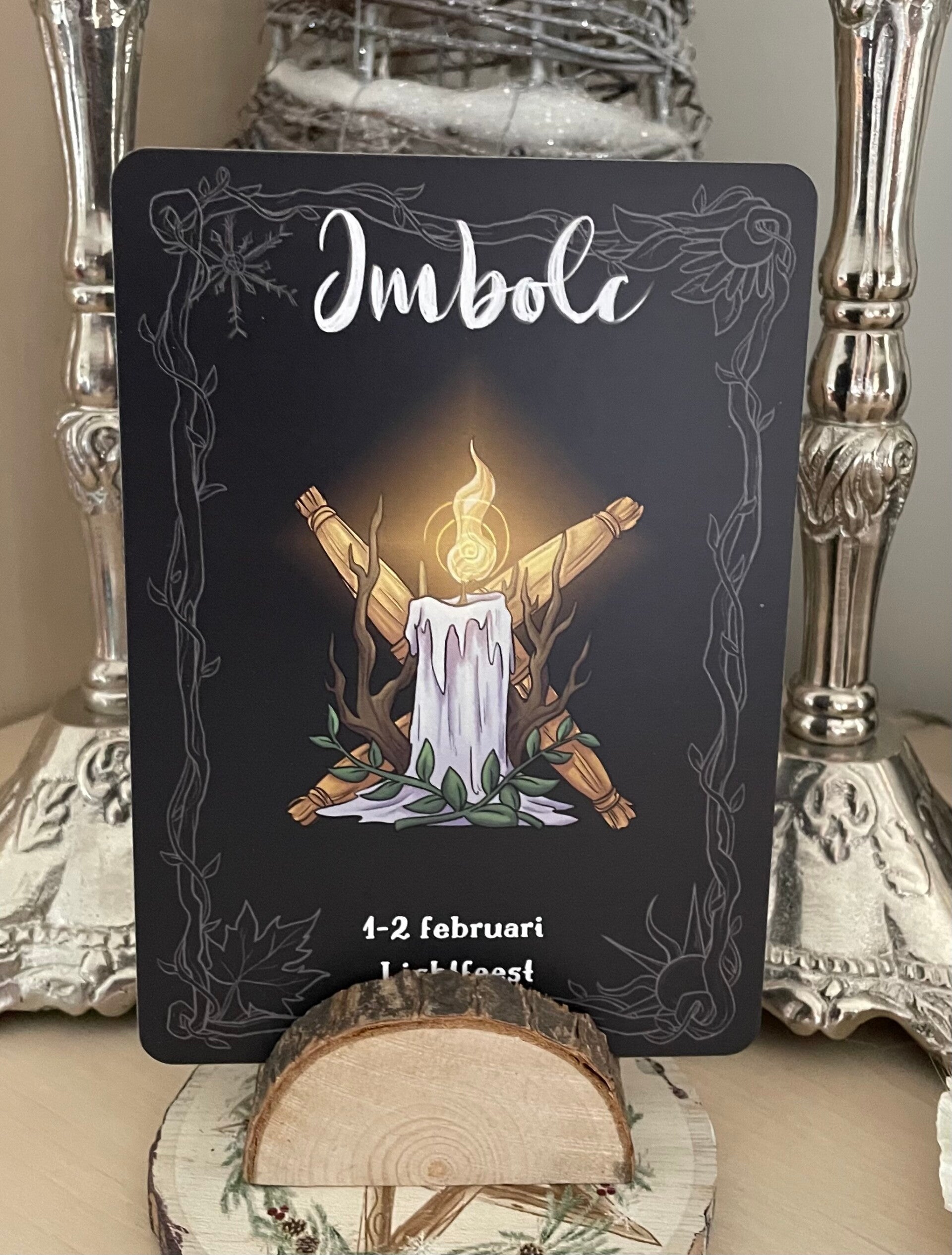 Imbolc (1-2 februari) markeert het prille begin van de lente en de terugkeer van het licht, en wordt gevierd als een moment van hoop en vernieuwing. De energie is fris, optimistisch en vruchtbaar, terwijl de natuur stilaan ontwaakt onder de aarde, ondanks de kou boven de grond. Dit is een tijd van zuivering, reflectie, creativiteit en het plannen van nieuwe ideeën.