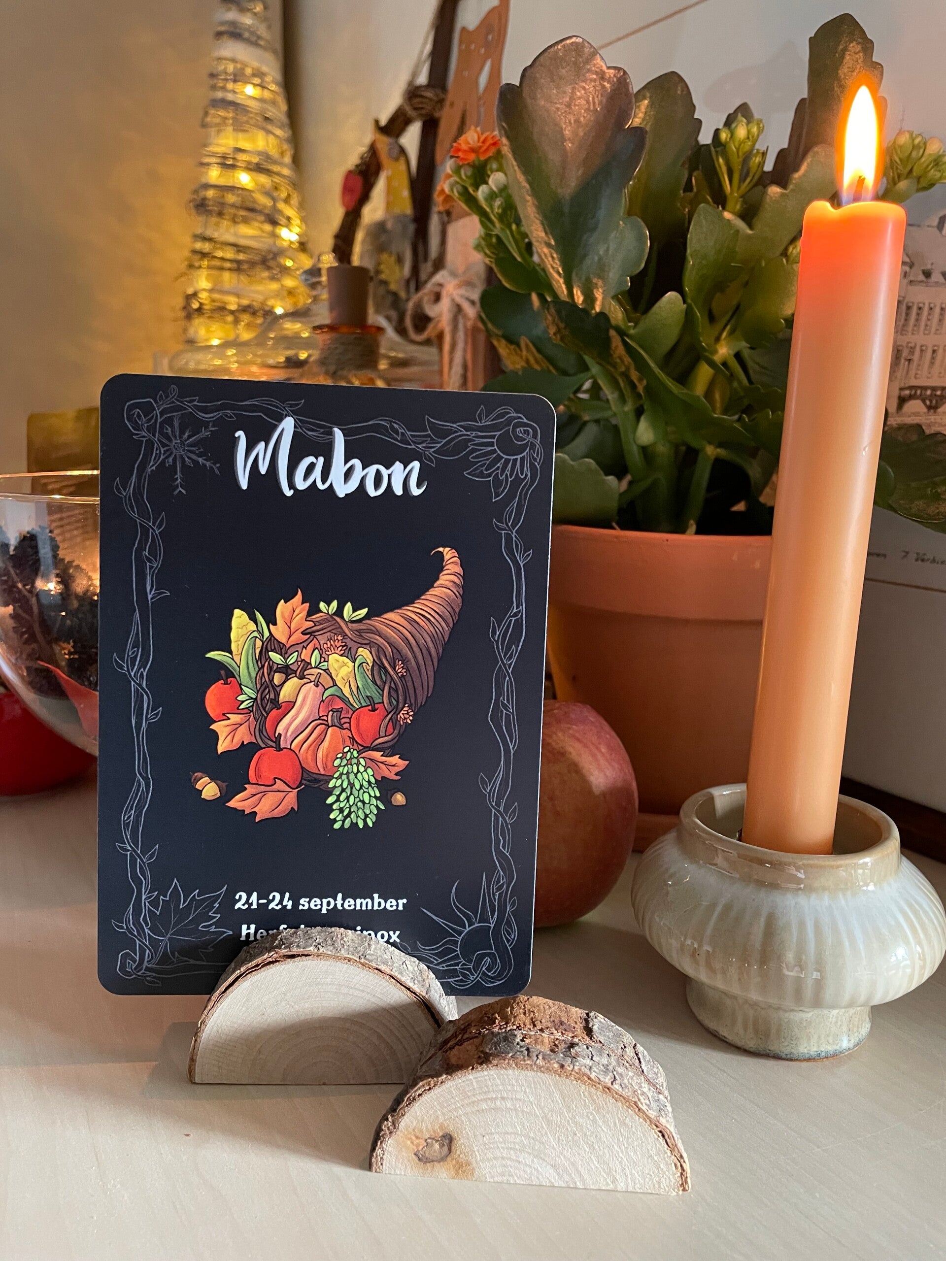- Goden (als je daarmee werkt): Mabon, the Green Man, Demeter, Persephone, Morrigan, Pomona