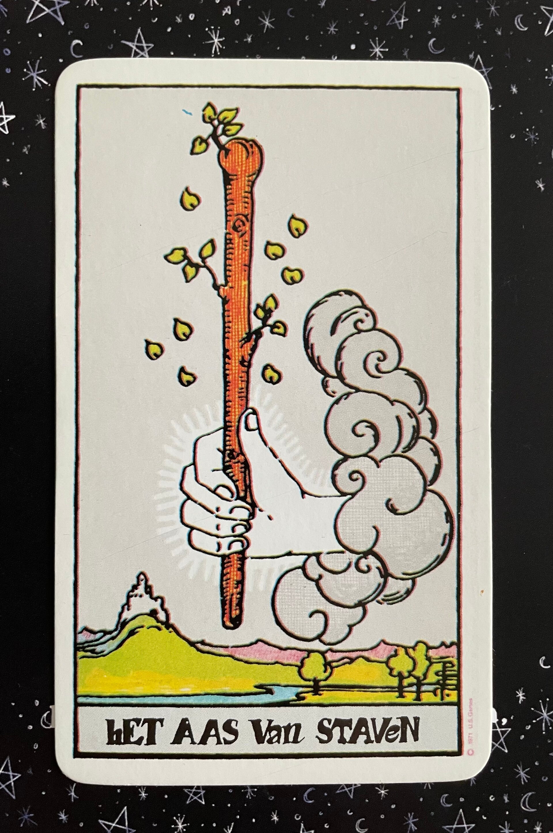 De Aas van Staven is een krachtig symbool van mogelijkheden op het vlak van creativiteit, avontuur, moed en persoonlijke groei. Het suggereert dat er een zaadje van gedurfd enthousiasme in je leven is geplant, zelfs als je je daar misschien niet van bewust bent. Wanneer dit zaadje ontkiemt, kan het zich manifesteren in diverse vormen. Dit kan een creatief idee zijn, een golf van optimisme of de drang om stoutmoedig te handelen. In de buitenwereld kan het zich uiten als een aanbod, een geschenk, een kans, een ontmoeting of een zinvol toeval.