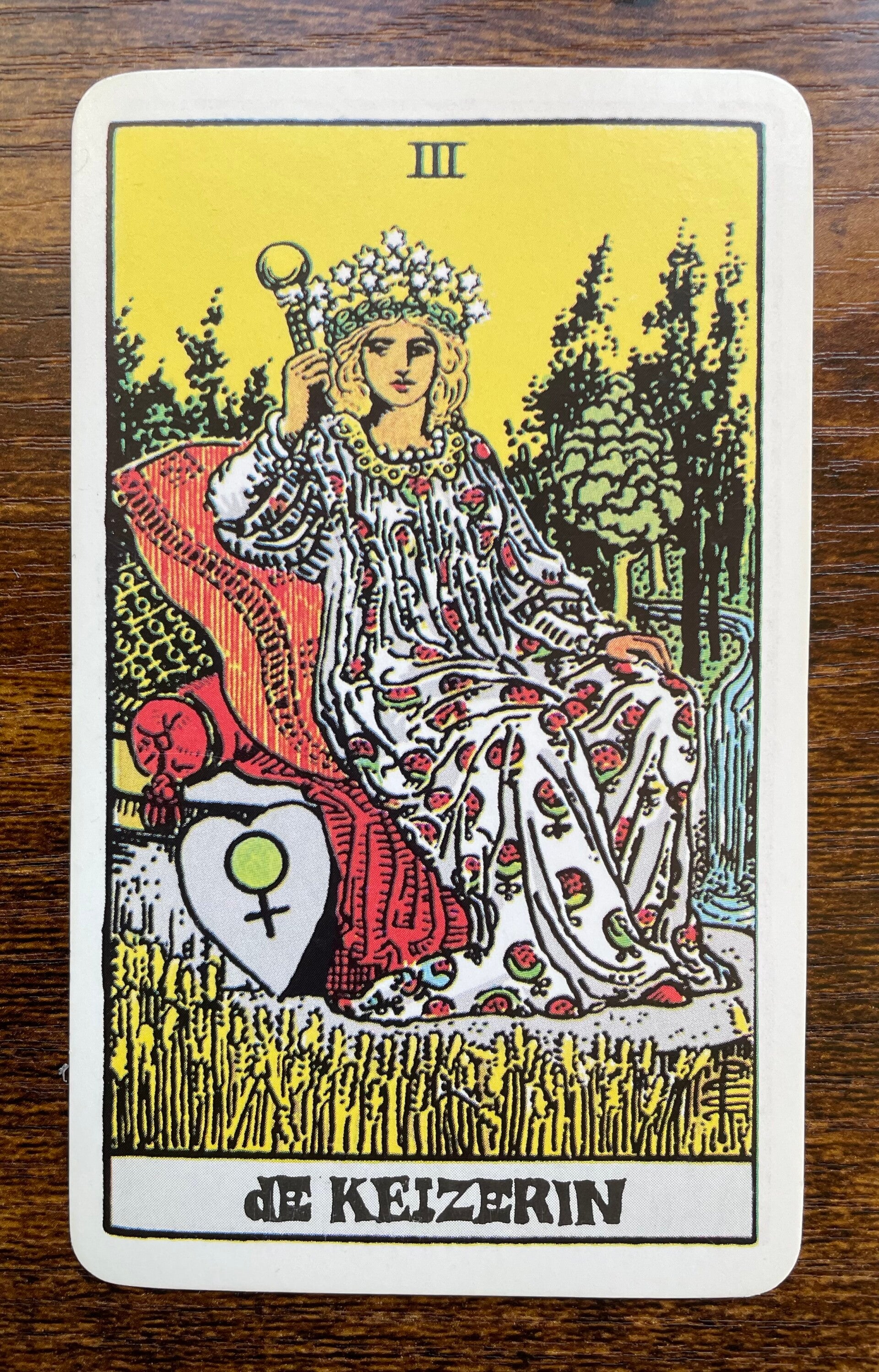 De Keizerin en de Hogepriesteres vormen de twee fundamentele kanten van het vrouwelijke archetype in de Grote Arcana. De Keizerin vertegenwoordigt de vruchtbare, leven gevende Moeder die heerst over de overvloed van de natuur en de ritmes van de aarde. Vanuit haar vloeien alle zintuigelijke genoegens en de overvloed aan nieuw leven in alle vormen. De Keizerin moedigt je aan om je band met de natuurlijke wereld, onze levensbron, te versterken. Helaas kunnen schijnbare verfijningen en tijdelijke geneugten ons vaak van onze roots afleiden. Laat de Keizerin je eraan herinneren om met beide voeten stevig op de grond te blijven staan.